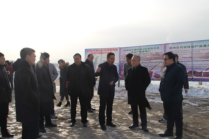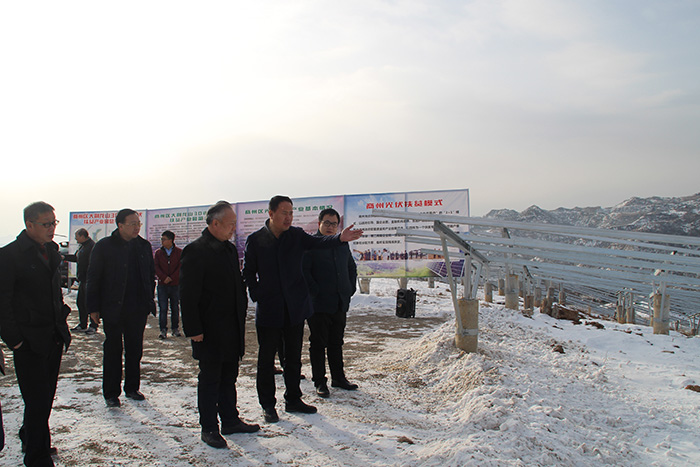 在大荊龍山光伏扶貧產(chǎn)業(yè)園,區(qū)城投公司董事長李斌虎同志向觀摩團一行詳細介紹了項目進展情況。