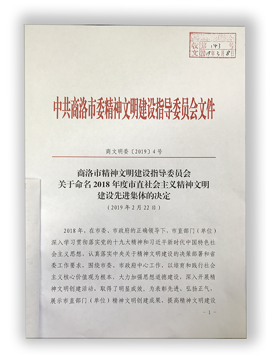 2018年,市城投公司在市委、市政府的正確領(lǐng)導(dǎo)下,深入學(xué)習(xí)貫徹落實(shí)黨的十九大精神和習(xí)近平新時(shí)代中國(guó)特色社會(huì)主義思想,認(rèn)真落實(shí)中央關(guān)于精神文明建設(shè)的決策部署和省市委工作要求,以培育和踐行社會(huì)主義核心價(jià)值觀為根本,大力加強(qiáng)思想道德建設(shè),深入開展精神文明創(chuàng)建各項(xiàng)活動(dòng),取得了顯著成效。經(jīng)扎實(shí)開展創(chuàng)建活動(dòng),自查和市文明委檢查考核、審核公示,報(bào)經(jīng)市委常委會(huì)研究同意,市委文明委授予商洛市城市建設(shè)投資開發(fā)有限公司縣級(jí)文明單位稱號(hào)。