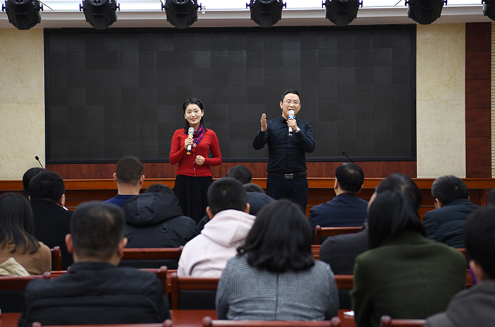 為積極響應(yīng)市文明辦文明單位創(chuàng)建活動(dòng), 提升市城投隊(duì)伍素質(zhì)、豐富員工文化生活,進(jìn)一步增強(qiáng)城投人愛崗敬業(yè)、團(tuán)結(jié)奉獻(xiàn)的道德情操。 2018年12月5日下午,公司在城投大廈5樓會(huì)議室開展企業(yè)文化學(xué)習(xí)培訓(xùn)等活動(dòng)。 本次活動(dòng)分為三項(xiàng)內(nèi)容: 第一項(xiàng)由市委黨校蘇津老師培訓(xùn)《 企業(yè)文化建設(shè)與企業(yè)形象塑造》;第二項(xiàng)由經(jīng)營(yíng)開發(fā)部開展“愛崗敬業(yè)、團(tuán)結(jié)奉獻(xiàn)”第二期道德講堂活動(dòng);第三項(xiàng)由公司讀書會(huì)成員及特邀嘉賓進(jìn)行專題朗誦。本次學(xué)習(xí)活動(dòng)由王昱智副總經(jīng)理主持,公司領(lǐng)導(dǎo)班子及全體員工參加。