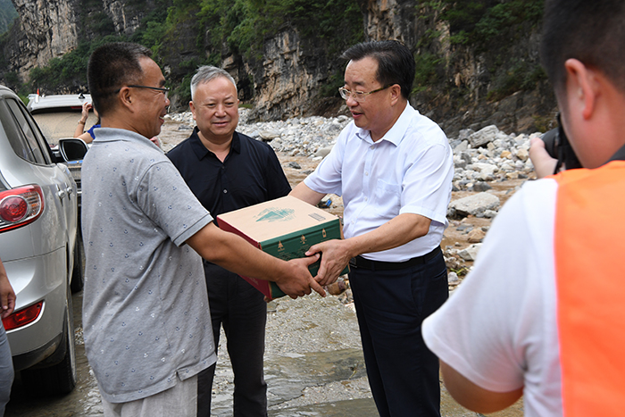 8月13日下午,市國資委黨委書記、主任,市工信局黨組書記、局長曹寶良帶隊深入洛南石坡、巡檢兩鎮(zhèn)搶險救災(zāi)一線,看望慰問市城投公司防護搶險黨員突擊隊員和施工隊員,為他們送去礦泉水、方便面等慰問品。市國資委黨委副書記陳靜、市城投公司董事長葉春祥一同前往。