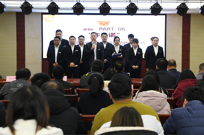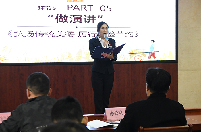活動開始,首先由商山華庭裝飾公司組織開展“弘揚(yáng)傳統(tǒng)美德 厲行勤儉節(jié)約”2020年第二期道德講堂。道德講堂共分為“唱歌曲、學(xué)模范、誦經(jīng)典、看短片、做演講、許承諾”六個環(huán)節(jié)。合唱歌曲《勤儉是咱們的傳家寶》唱出了中華民族自古以來的勤儉好傳統(tǒng),“許承諾”環(huán)節(jié),員工們齊聲許下“弘揚(yáng)傳統(tǒng)美德,厲行勤儉節(jié)約,堅(jiān)決制止浪費(fèi),切實(shí)培養(yǎng)勤儉節(jié)約優(yōu)良傳統(tǒng)”的美好承諾。