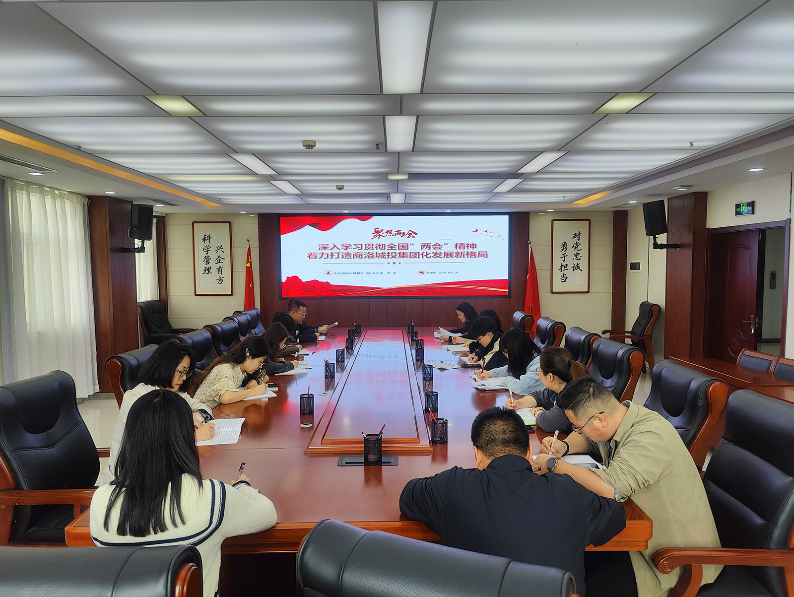 4月19日,中共商洛市城投公司機(jī)關(guān)支部積極響應(yīng)公司黨委統(tǒng)一安排部署,開展《深入學(xué)習(xí)貫徹全國“兩會”精神 著力打造商洛城投集團(tuán)化發(fā)展新格局》全國兩會宣講活動?;顒佑蓹C(jī)關(guān)支部書記羅蘋主持,機(jī)關(guān)支部全體黨員、發(fā)展對象、積極分子及全體員工參加會議。