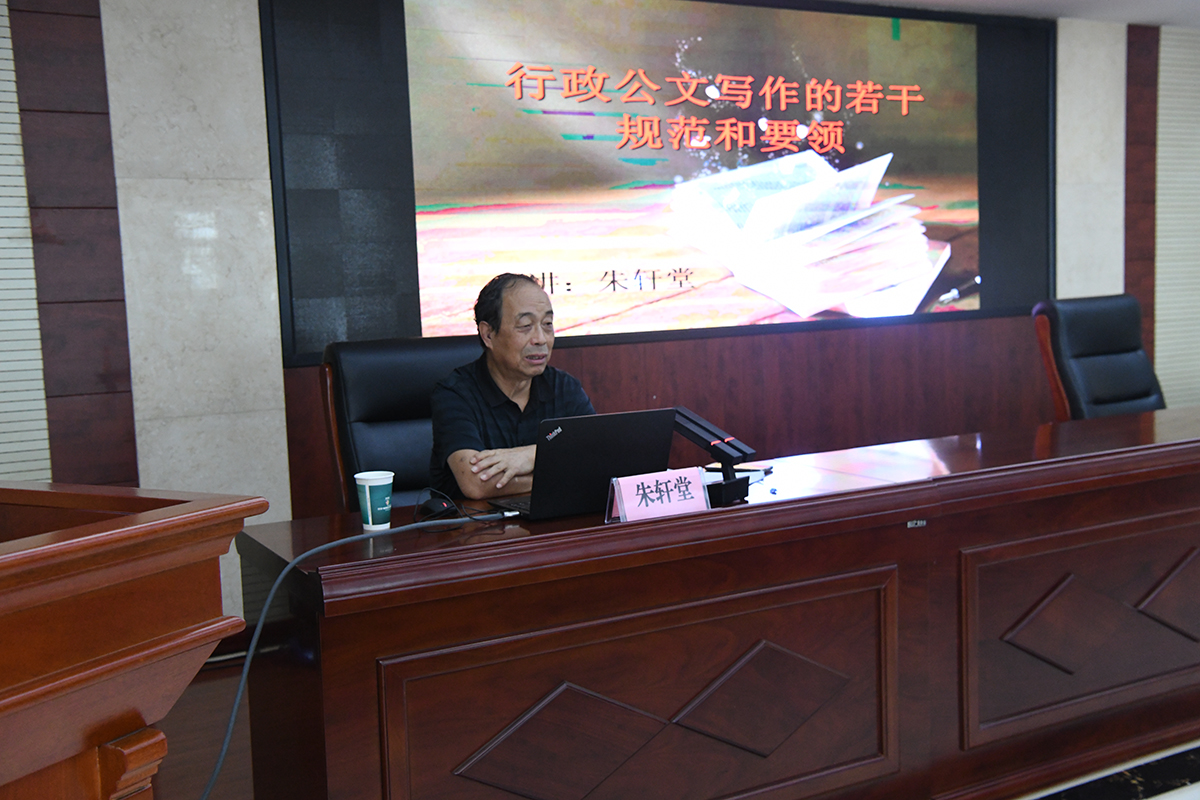 培訓會上,朱軒堂同志以簡潔的語言風格、扎實的理論知識、豐富的具體案例,圍繞行政公文的基本常識、行政公文寫作的基本要領(lǐng)、堅定文化自信在“在兩個結(jié)合”中提高公文寫作能力三個方面進行了深入闡述,并結(jié)合自身多年的寫作經(jīng)驗和工作感觸,對公文寫作的體例格式、謀篇布局、內(nèi)容甄選、出彩出新、規(guī)避寫作誤區(qū)等核心知識進行解剖式教學,為全體與會人員呈現(xiàn)了一堂兼具指導性與針對性的精彩講座。